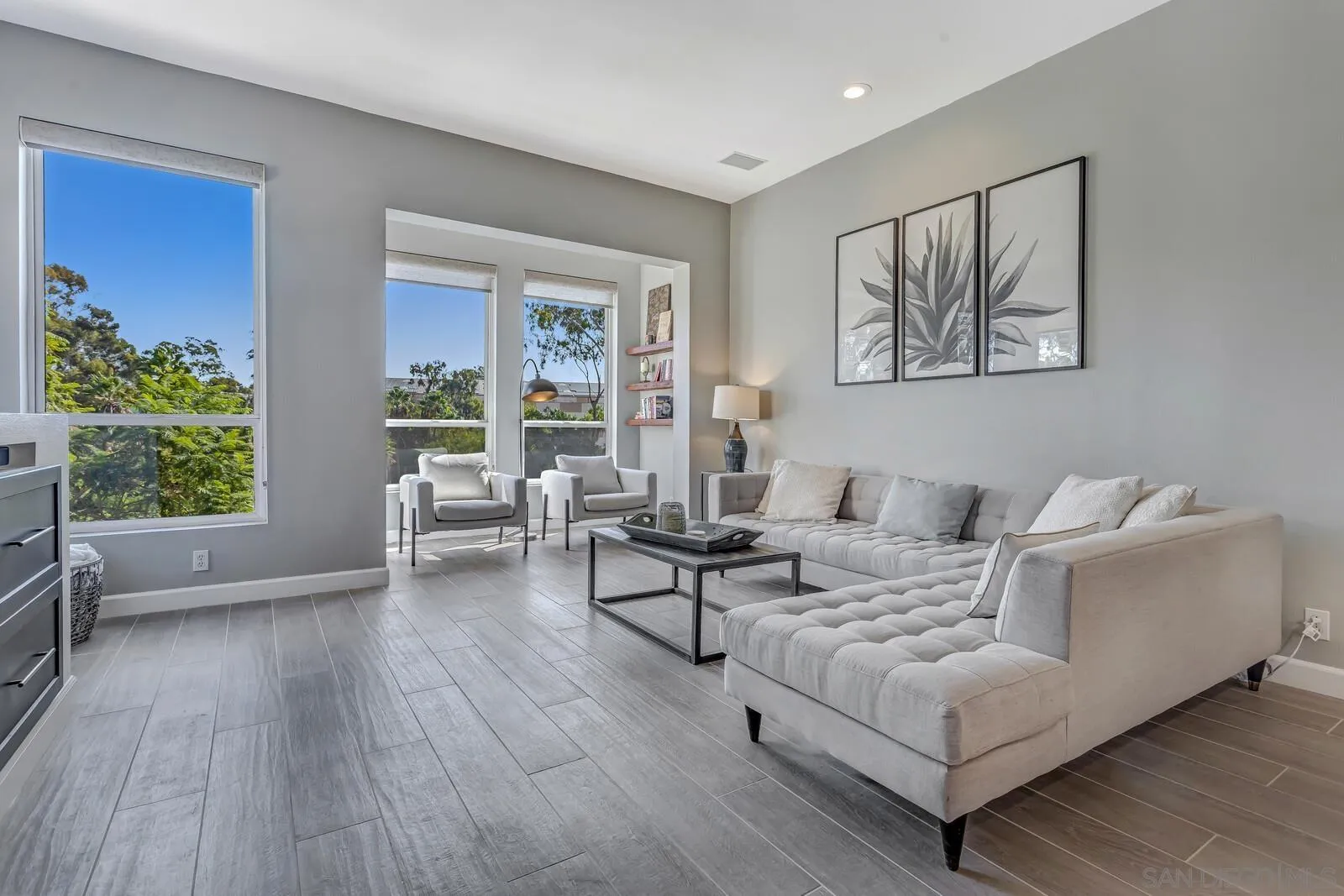 Chic Townhome @ Cortez Hill. Discover sophisticated urban living in this beautifully updated 3-bed, 2-bath townhome nestled in the desirable Cortez Hill neighborhood. This stylish residence blends modern finishes with comfortable charm, offering a light-filled open floor plan and high ceilings throughout. The recently renovated kitchen is a showstopper, featuring waterfall stone countertops on a spacious island, a stunning stone backsplash, shaker-style cabinetry, built-in high-end refrigerator, and stainless steel appliances all illuminated by designer lighting and sleek down-lights. The inviting living area centers around a bold statement fireplace and built-in entertainment unit, complemented by wood-style tile flooring and warm, soothing color tones. Roll-up blinds and shutters offer privacy and style in every room. Custom backlit stair steps add a unique architectural touch. Retreat to the private primary suite complete with elegant barn doors, its own balcony, and spa-inspired finishes. Enjoy San Diego’s perfect climate on the private outdoor balcony with a fire pit ideal for entertaining or quiet evenings under the stars. Additional highlights include a full-size washer & dryer, two-car tandem garage with a private storage room, and low HOA dues. This prime location is walkable to everything: Gaslamp, Little Italy, Petco Park, Balboa Park, waterfront, San Diego Zoo, Cortez Hill Park, and a wide array of restaurants & entertainment. Quick access to major freeways makes commuting a breeze. Stylish, central, and move-in ready this is downtown living at its best.