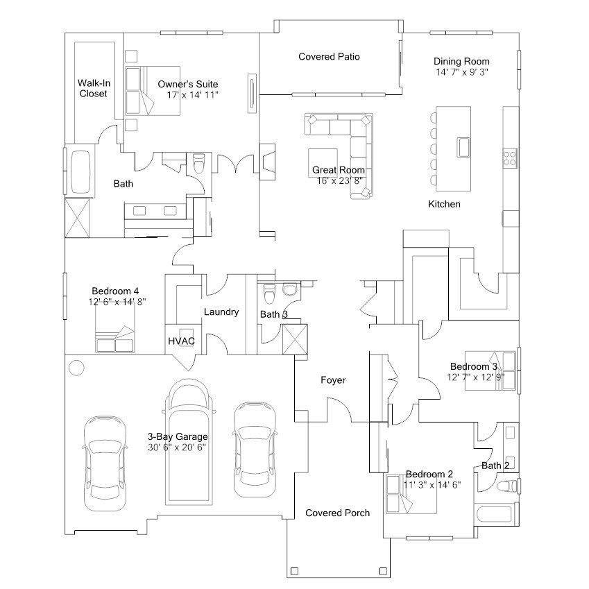 This new home offers a low-maintenance design and convenient single-level living. Two bedrooms are located off the foyer, leading to an open-concept floorplan with access to a covered patio for seamless entertaining and multitasking. Two additional bedrooms are tucked away to the side of the home for improved comfort, including the lavish owner's suite featuring a spa-inspired bathroom and walk-in closet.