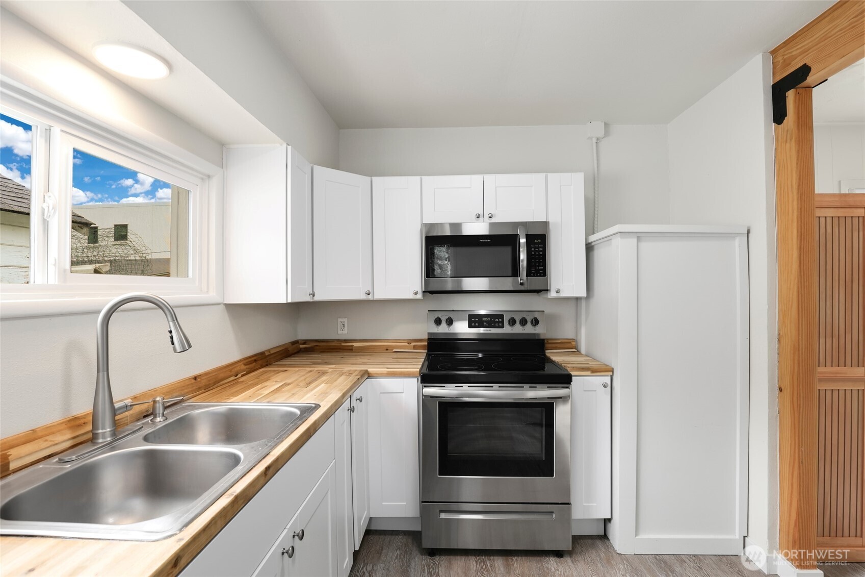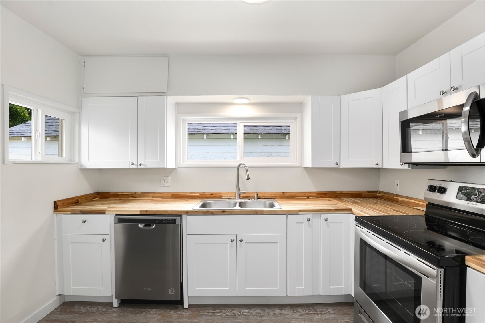 Beautifully updated turn-key 3 bedroom home featuring a 40-year architectural roof, a stunning white kitchen w/butcher block counters, remodeled bathroom, new SS appliances, & luxury vinyl plank flooring throughout the main living areas. The bedrooms boast plush new carpet, & the entire home has been freshly painted for a bright, welcoming feel. Enjoy a spacious, backyard—ideal for outdoor living or future projects like a garage, covered parking, or a paved driveway w/alley access. With a new A/C unit for year-round comfort, this is a fantastic opportunity to own a move-in-ready home that’s been thoughtfully updated from top to bottom. Other upgrades include a new panel upgrade, foundation reinforcement & new plumbing. A must see!