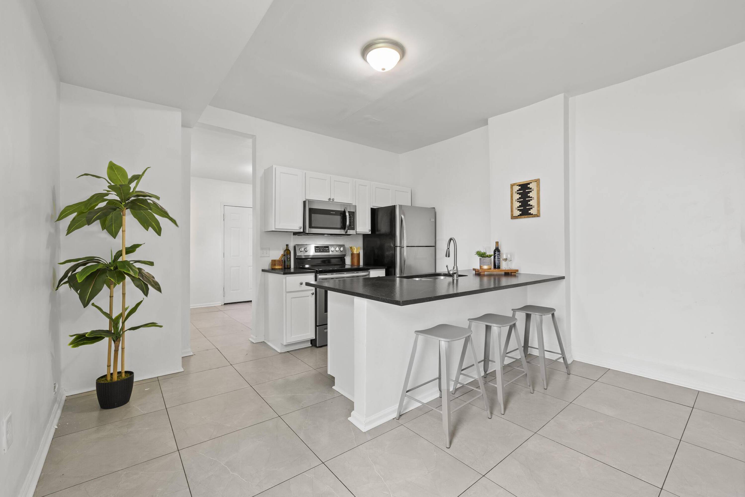 Discover this fully renovated double/duplex, each unit offering 2 bedrooms and 1 bathroom. The living rooms feature original decorative fireplaces, adding a touch of historic charm. The kitchens are spacious with large center islands, eat-in areas, and honed granite countertops. Each unit includes a convenient first-floor mudroom and laundry. Enjoy privacy with independently fenced backyards and the convenience of off-street parking. Perfect for investors or owner-occupants, this property blends modern amenities with classic character, creating a welcoming and functional living space. Please do not disturb tenants, property is fully occupied. Curb Offers Only. Buyer(s) can be granted walk-through 24 hours after contract acceptance.