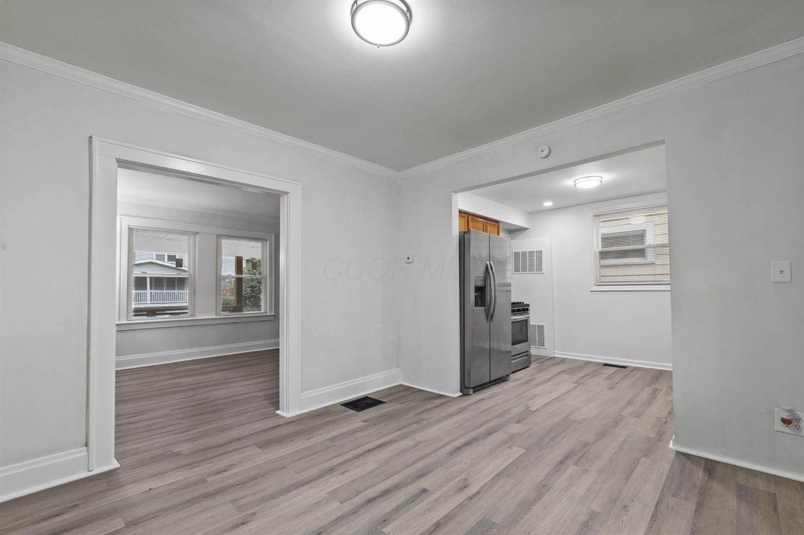Welcome home to this charming 2-bedroom 1 bath home featuring a spacious living room, dining area, and a kitchen with stainless steel appliances and a gas range. Enjoy peace of mind with new flooring (carpet & LVP), fresh paint, a new sump pump with battery backup. Upstairs you'll find two bedrooms with nicely sized closets and a full bathroom with a relaxing tub. The large owner's suite and bright open spaces make this home as functional as it is inviting. Outdoor living is a breeze with covered front and back porches, a large fenced backyard with access to parking, and a decorative fireplace that adds extra charm. With some new windows and thoughtful improvements throughout, this home is move-in ready. Special Financing Opportunity: This house qualifies for $0 down payment and a $15,000 grant with Park National Bank.
